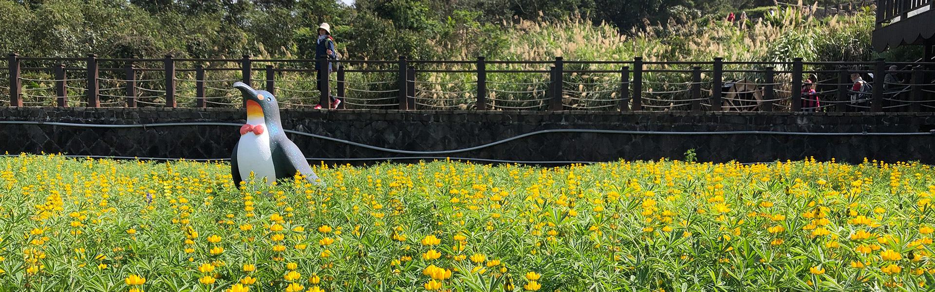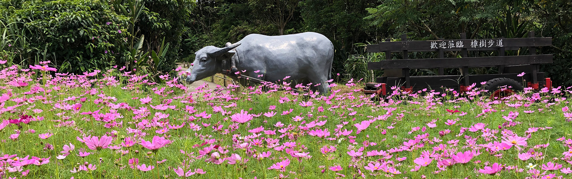 Maokong Camphor TrailLocal farmers in cooperation with public and/or private companies plant Luping flowers, cosmos and sunflowers in the areas surrounding the Zhangshu Trail and pool in Wenshan District. Aside from flower viewing along the trail, tourists can also enjoy the artworks projecting the image of farming villages. As one of the popular hiking trails in Maokong area, the Camphor Trail is so mild and hiker-friendly that it is very suitable for parent-child hiking. Welcome to bring all your family members and friends to taste the tea, food and beautiful scenery of Maokong.