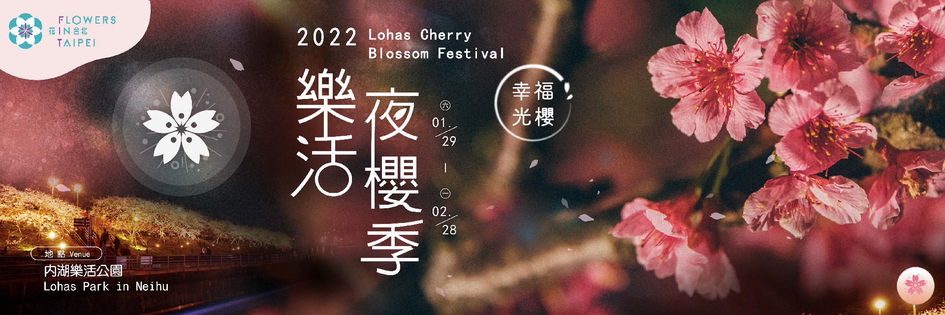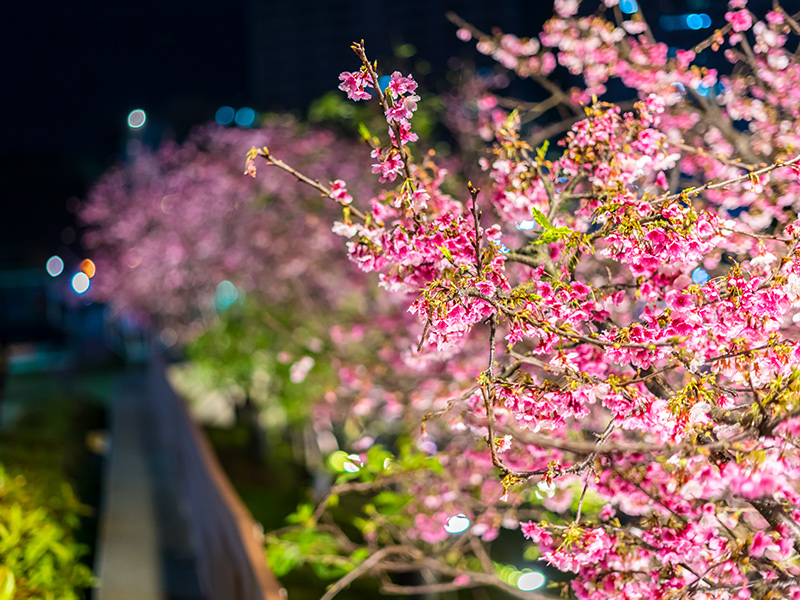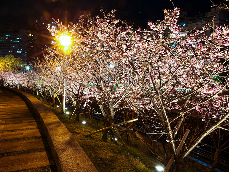Neihu LOHAS ParkEnjoy the cherry blossoms at night and feel how romantic Taipei night can be! With the efforts of the Village Chief and volunteers, about 300 cherry blossoms of various varieties are planted along the Neihu Neigousi Trail, allowing visitors to stroll along the stream every spring to admire various cherry blossoms such as cold cherry, Yaezakura, Showa cherry, and Yoshino cherry, which bloom one after another in each of their own seasons. They look especially gorgeous under the lights at night. Welcome to LOHAS Park to have a beautiful night with cherry viewing!