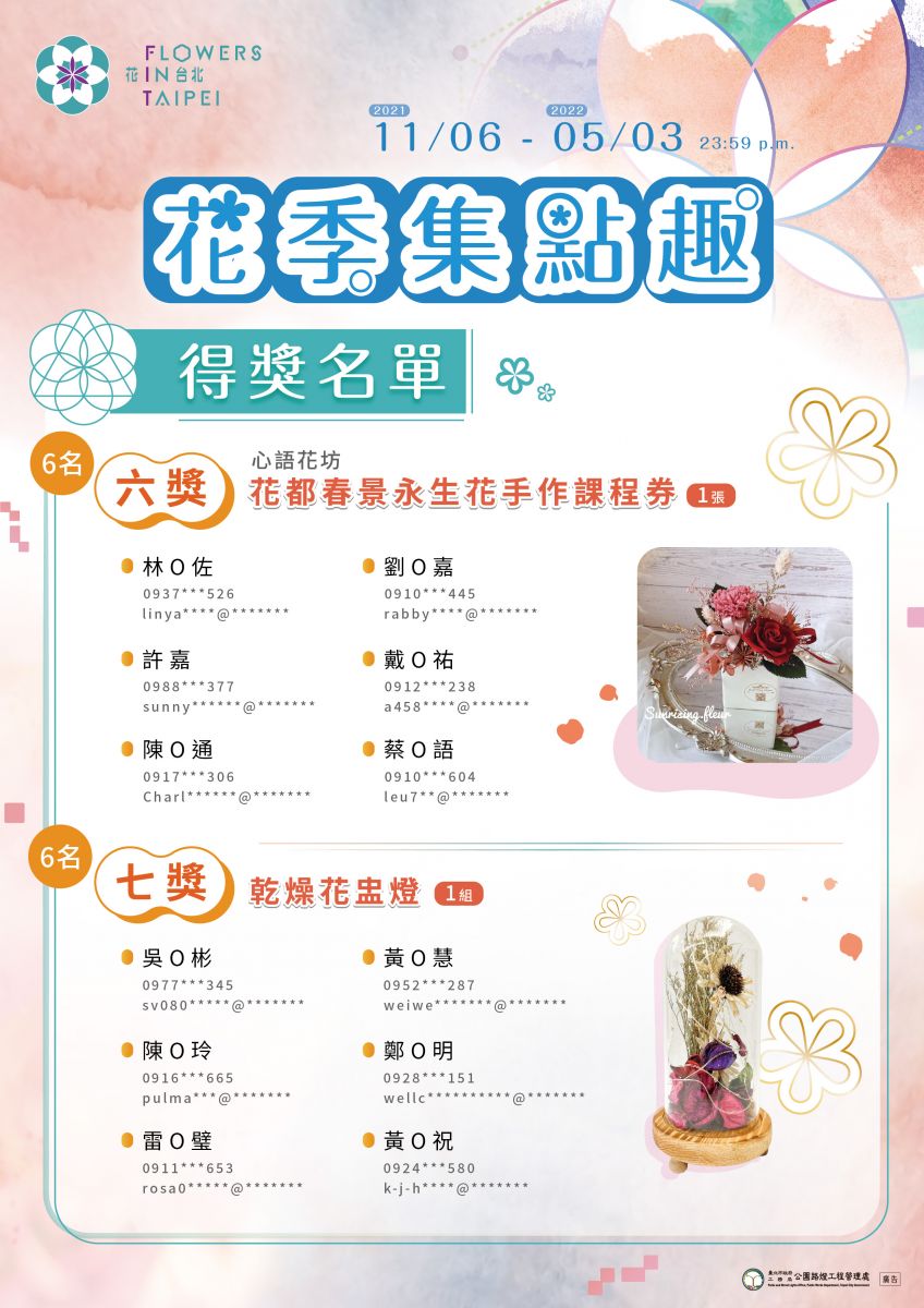 大家久等了!期待已久的花系列集點趣得獎名單出爐