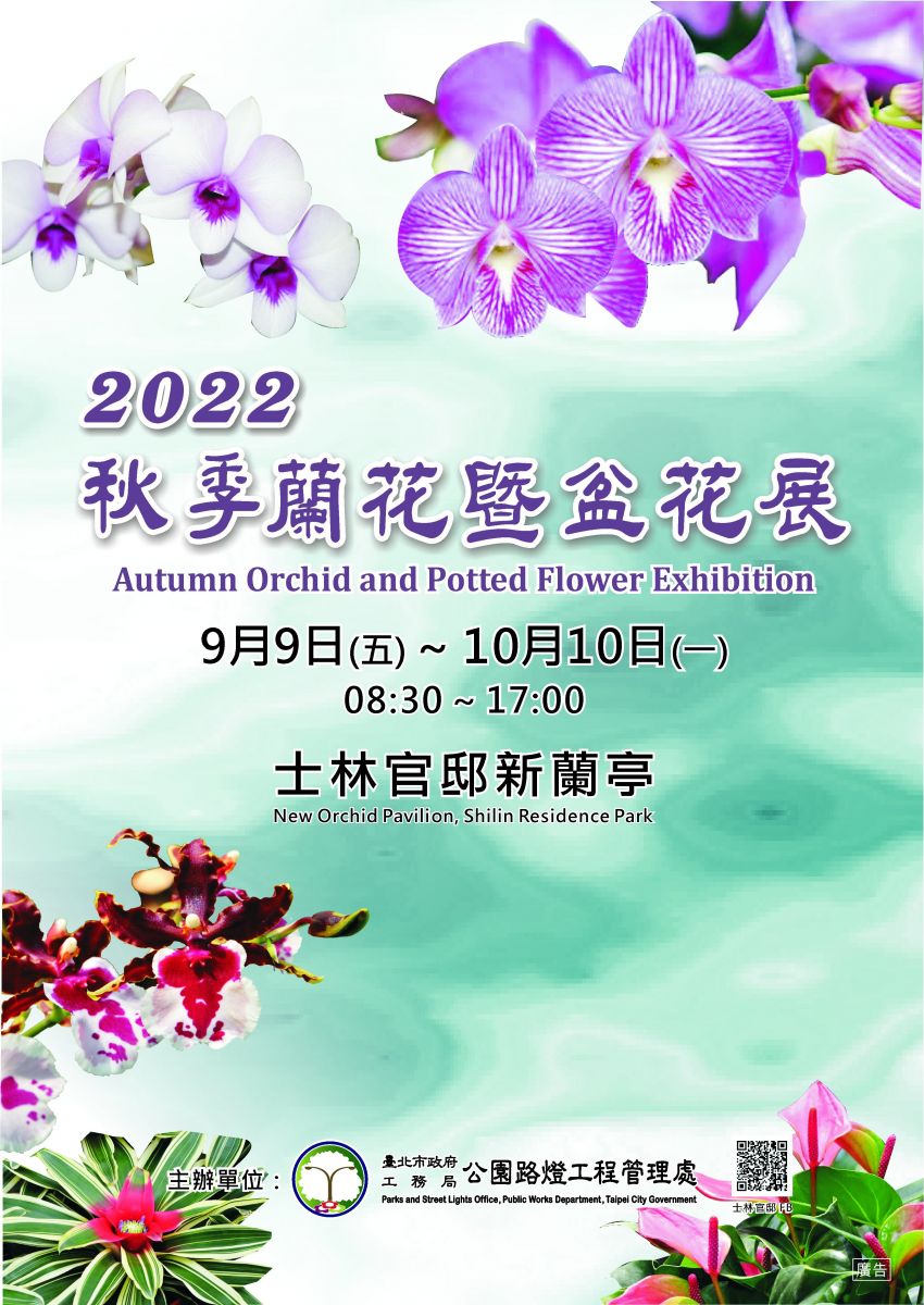 本次展場設計是資深業師帶領臺灣花藝技能競賽培訓國手、全國技能競賽花藝職類金牌選手、松山工農與莊敬高職園藝科學生構思製作完成。年輕學子各個好手藝,將各式各樣蘭花與盆花組合設計為精美的造景與組合盆栽,歡迎大家於秋涼好時節來一趟士林官邸公園賞花行吧!