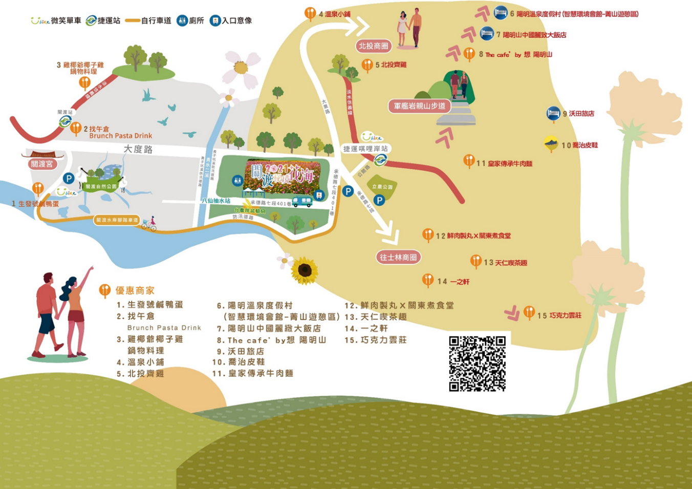 今年關渡花海訂於11月6日至11月21日舉行,現在農田裏的花苗正努力長大、茁壯,準備迎接您的到來;屆時除了美不勝收的花朵之外,臺北市政府工務局更邀集北投區及士林區的各優良商家共同合作,到花海遊玩時,至合作店家消費還能享有優惠喔。從鹹鴨蛋、牛肉麵、關東煮等餐飲到零嘴、伴手禮,走累了還有鞋店、溫泉會館等行程可以一起規劃,來一趟接近自然、舒展療癒身心的小旅行吧! 相關資訊請持續關注「關渡秘境花海」臉書粉絲專頁,今年11月的活動安排很豐富;拍照打卡、花海音樂會、花海導覽、手做花卉飾品…項項精彩,千萬別錯過,讓我們再次相約關渡秘境花海見!