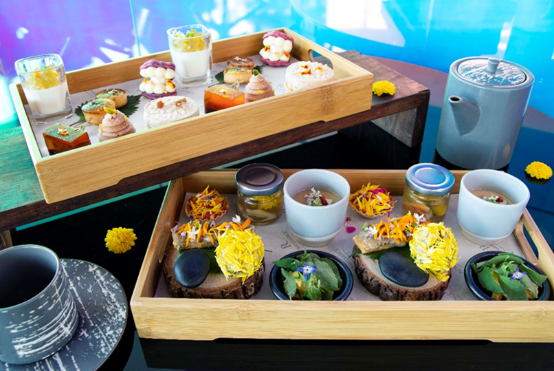 坐落在士林官邸旁的台北士林萬麗酒店,特別推出「絢麗多彩」菊花雙人午茶套餐,有12款鹹點、甜點,包括銀杏壽菊鱈場蟹、甜醋菊花鮭鱒塔、栗子鴨丁金菊飯、杭菊貝殼馬卡龍、茉莉秋菊凍奶酪、桂蜜黃菊錦玉羹等,主打清淡無負擔,將杭菊風味融入餐點內,清淡的花香襯托食材展現多層次風味,餐點也以輕巧花瓣點綴應景,讓民眾在此度過絢麗午茶時光。